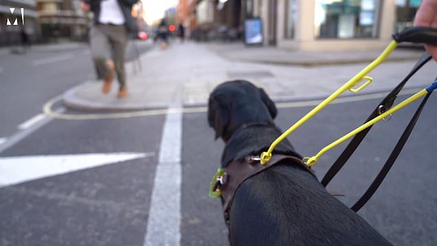 안내견은 바닥에 떨어진 간식을 무시하도록 훈련을